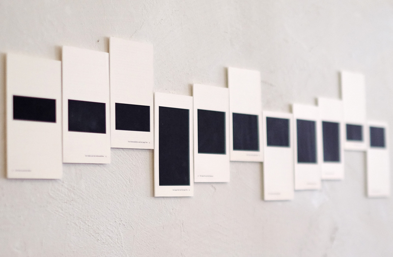 Diese Hommage an Kleists Gedankenstrich visualisiert das akkurat berechnete Verhältnis von verwendeter Druckerschwärze zu Zwischenräumen: