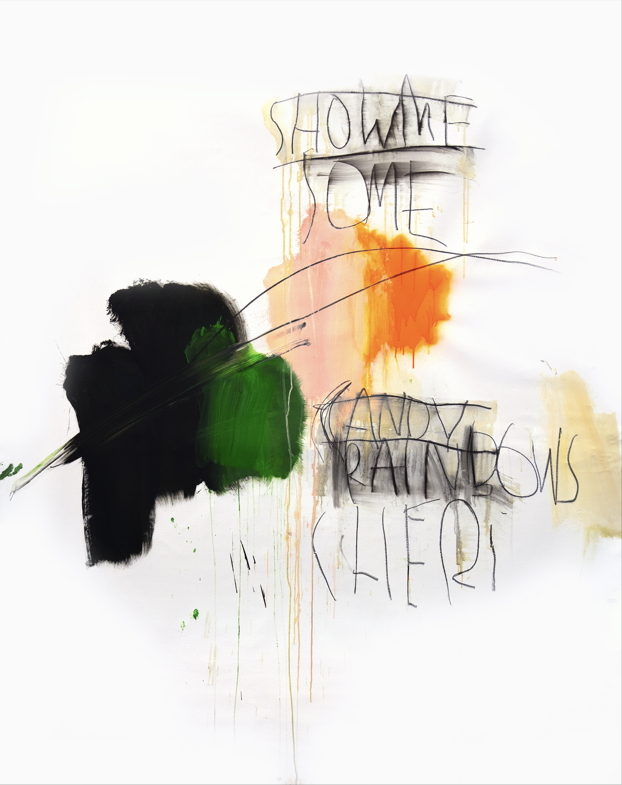 Ölmalerei auf Leinwand, Grafit, Neon Acrylspray