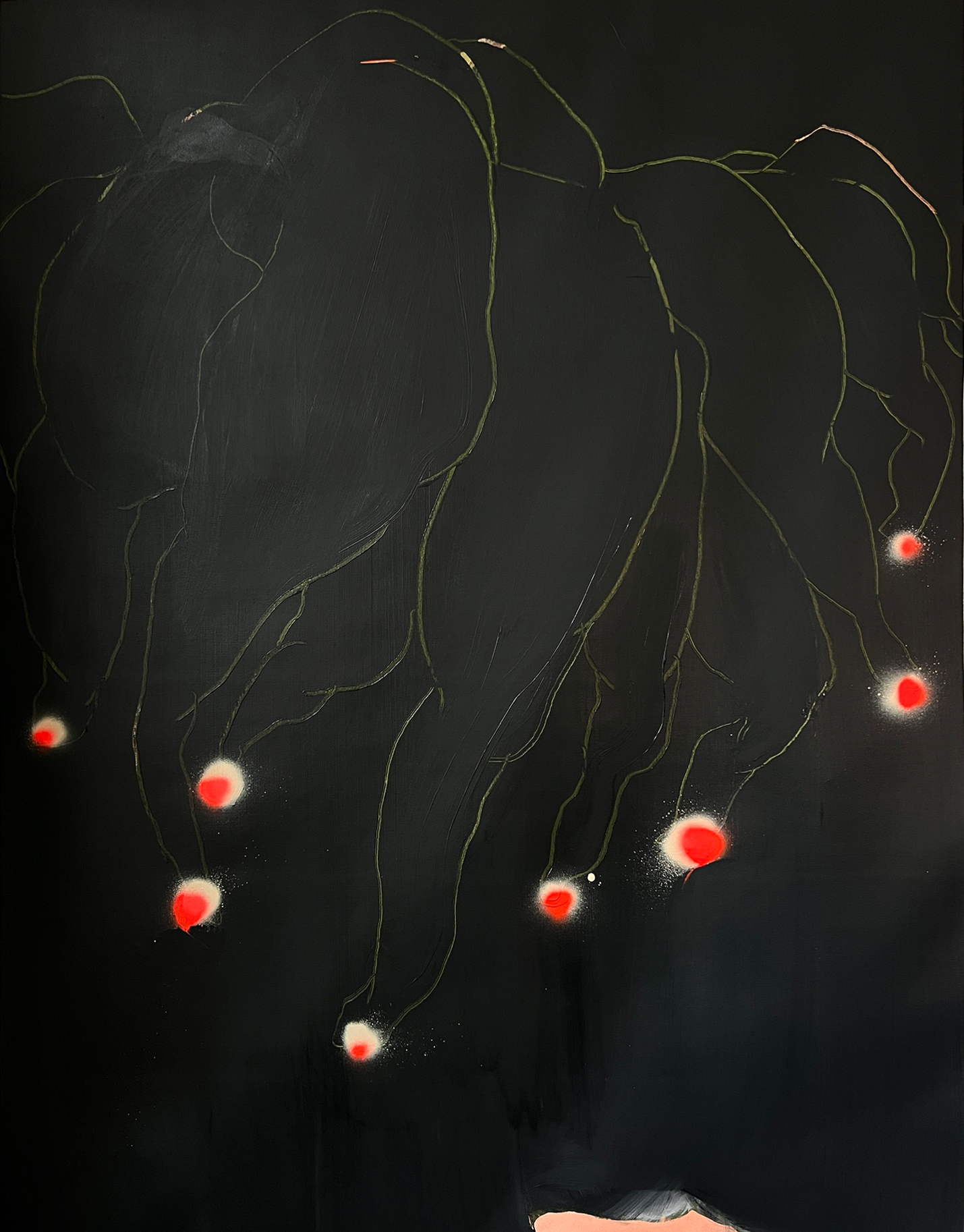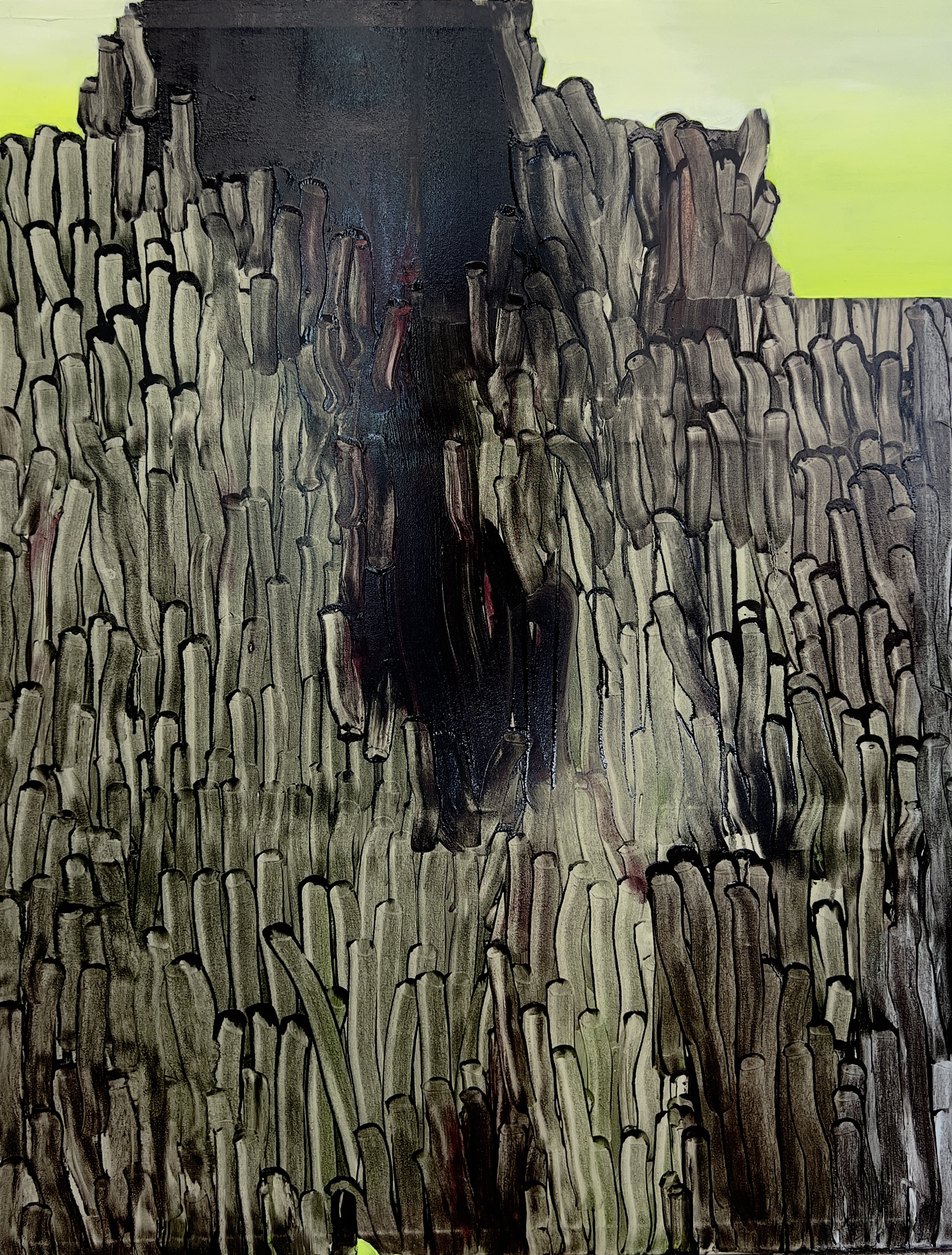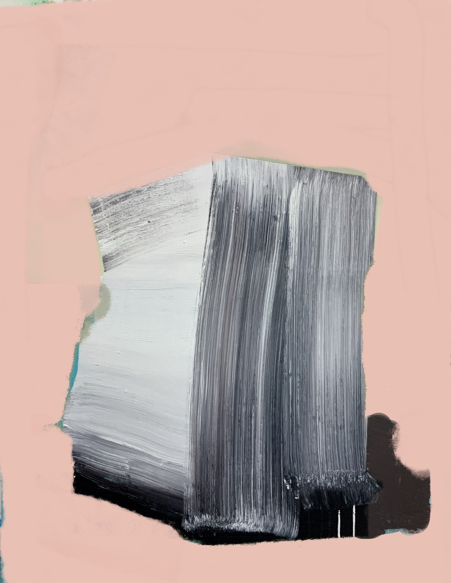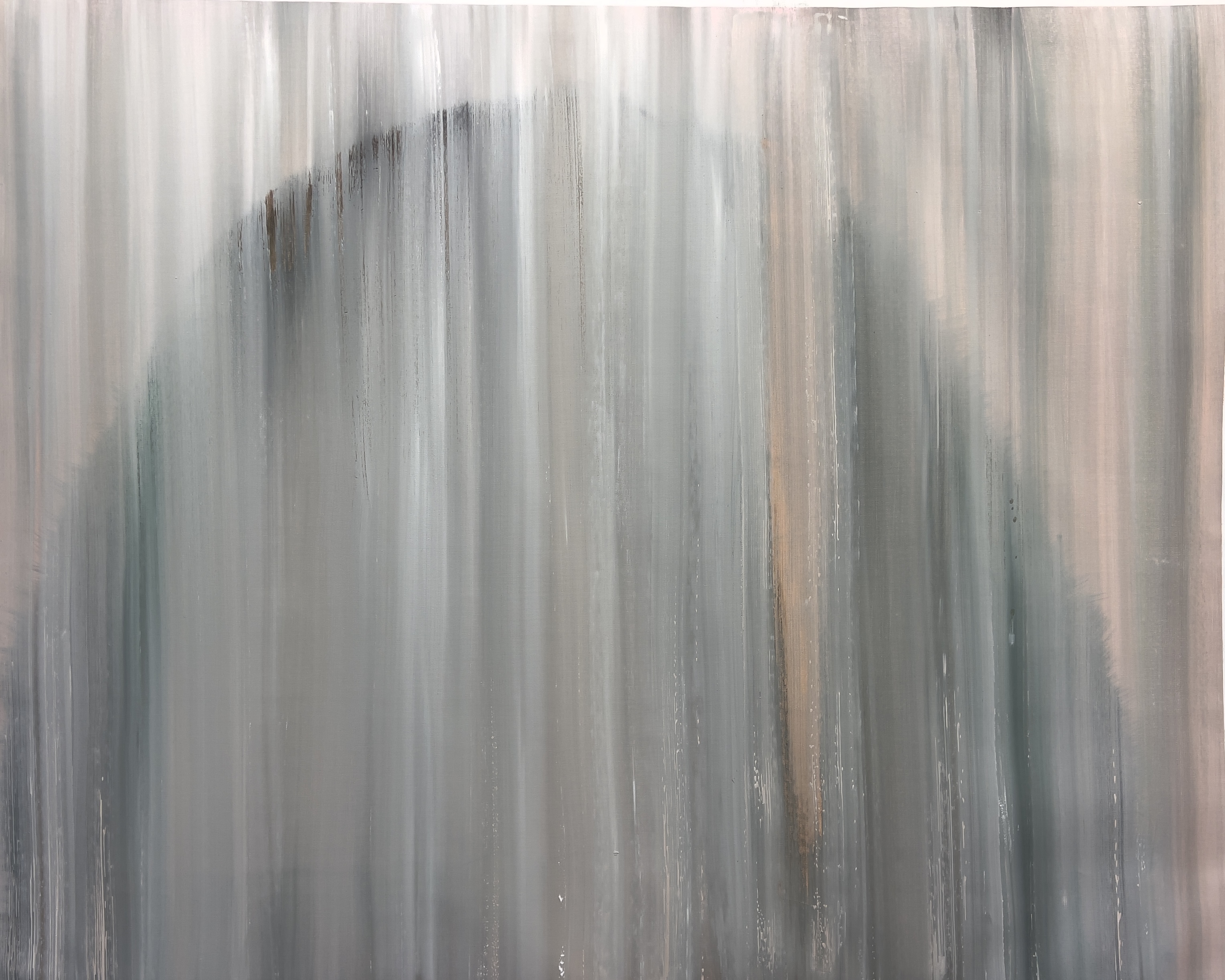 Die Tusche prägt sich auf den Vliessstoff ein. Die Bilder, die während des Tages gesehen wurden, lösen sich in ihrer Überlagerung auf. Zurück bleibt die weisse Fläche und die letzte Sequenz, die Spur der Wimpern.